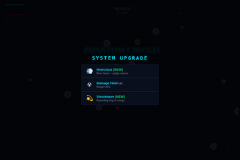 - 12 weapons and upgrades: Pulse Cannon, Orbit Orbs, Laser Beam, Shockwave Ring, Homing Missiles, Chain Lightning, Attack Drones, Damage Field, Barrier Shield, XP Magnet, Overclock, Nano Repair